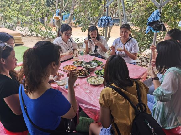 在工廠新址匯合并參觀完畢后,速航成員們便坐車前往惠州。坐了一個多小時車后,我們來到了惠州的霞涌農莊野炊園進行野炊活動。在野炊園中,團隊兵分八路,進行各自的野炊過程,每一位成員都拿出自己的看家本領,煎、炒、煮、燜齊上陣,川菜、粵菜、湘菜、魯菜等各色俱全。速航團隊是一個團結友愛的大家庭,來自五湖四海的團隊成員在這個家庭里以不同方式發光發熱,從而形成了獨具特色的企業文化。美食的制作過程費了大家不少工夫,但是親手做出來的午宴特別有家的味道。