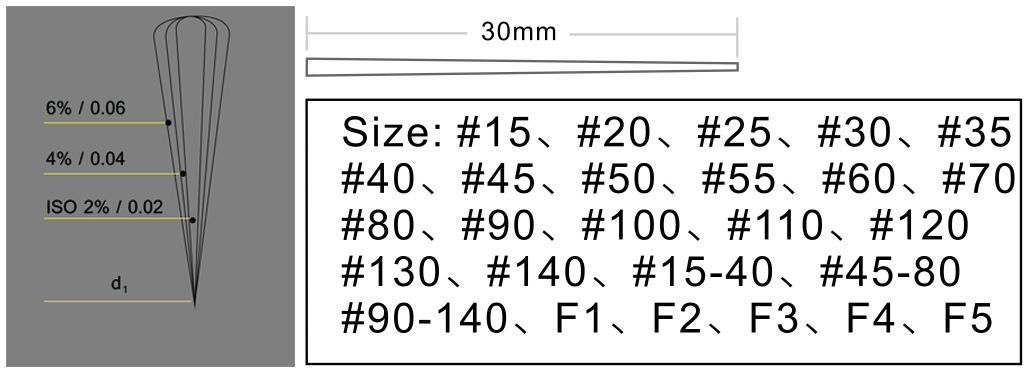 2.按規(guī)格可分為ISO標(biāo)準(zhǔn)牙膠尖和非標(biāo)準(zhǔn)牙膠尖